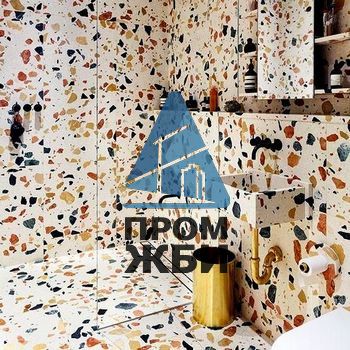 Напольное покрытие терраццо – особый вид отделки пола, подходящий для жилых и нежилых помещений, для ванных комнат и кухонных блоков. Основа технологии – высокопрочный бетон с типичным для этого вида покрытия наполнителем, в его роли выступают каменная крошка и фрагменты натурального камня, которые после шлифовки образуют на поверхности пола характерный мозаичный рисунок. Сама технология довольно древняя, но сегодня вновь приобретает популярность.